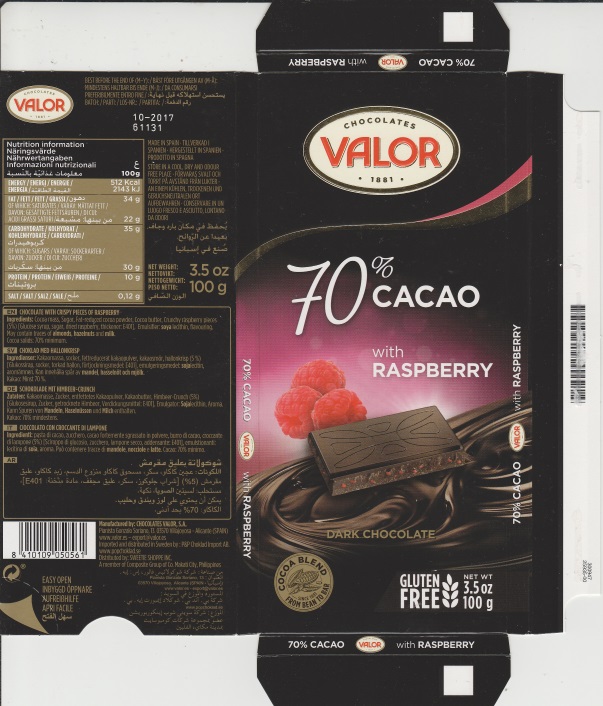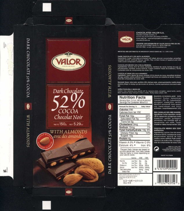 Nová továrna firmy VALOR byla otevřena roku 1963 ve městě Villajoyosa. Firma VALOR se stala společností s ručením omezeným roku 1973. Čokoládovna VALOR otevřela ve Villajoyosa vlastní muzeum čokolády. |