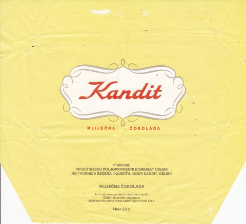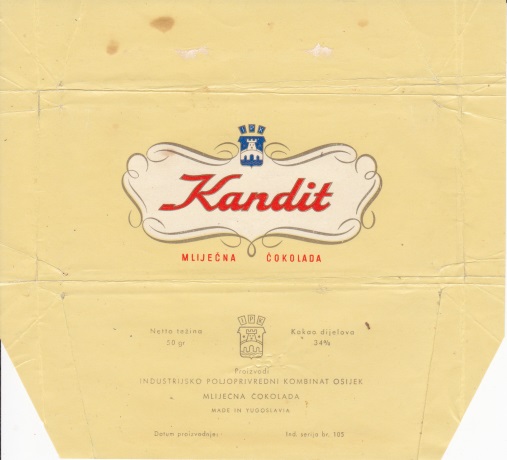 | KANDIT vyráběl té řadu plněných tyčinek a tabulek. Dodnes se prodávají plněné čokolády Dado a Goga. |