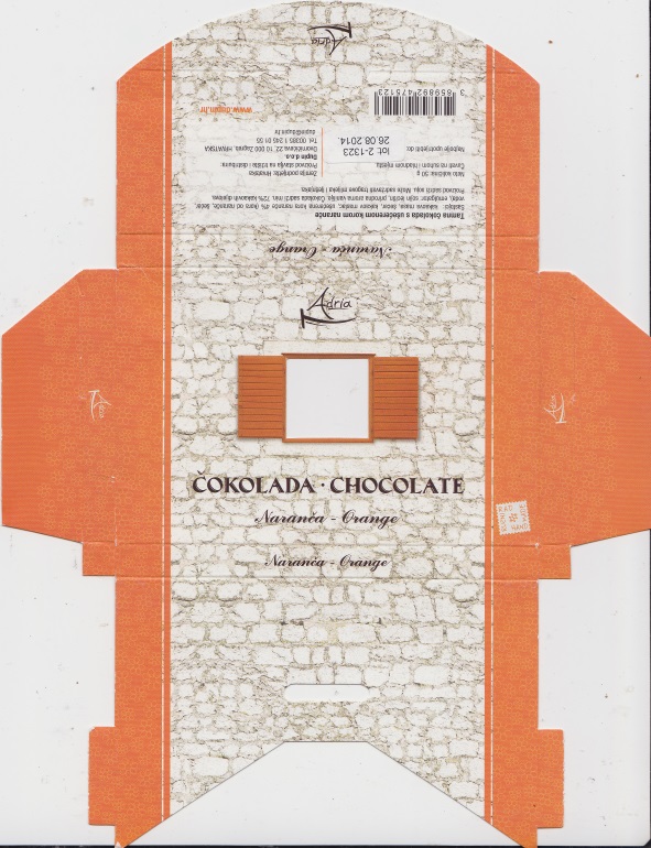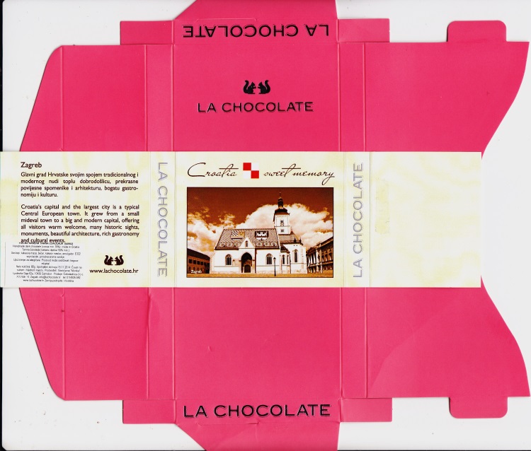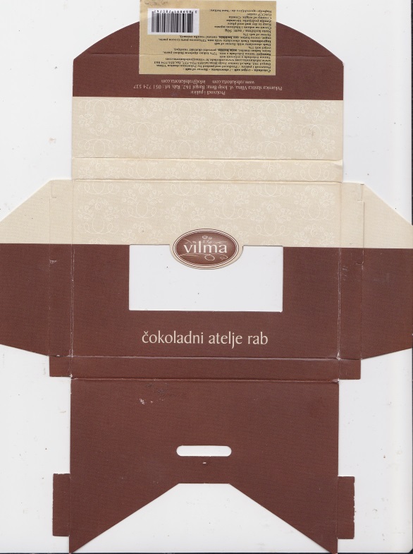 prodává čokolády pod vlastní značkou Adria. Firma LUXOR vyrábí kvalitní hořké čokolády Nadalina. Firma LA CHOCOLATE prodává své pralinky a čokoládové tabulky v několika obchodech v Záhřebu. Likérka a lihovar MARASKA ze Zadaru skončila s výrobou čokolády v šedesátých letech. Firma VASILJEV byla založena roku 1992 a od roku 2013 vyrábí cukrovinky včetně čokoládových pochoutek značky Choco Royal. Pekařství VILMA z ostrova Rab bylo založeno v roce 1996 a vyrábí také vlastní čokoládové tabulky. |